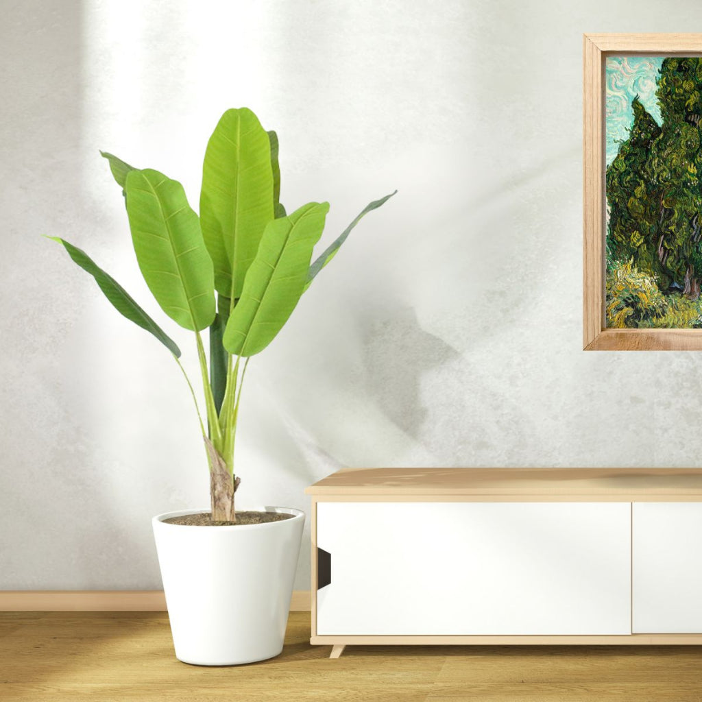 Transforme seu ambiente com a planta artificial bananeira, composta por um tronco robusto e folhas amplas com acabamento detalhado. Um visual tropical, vibrante e sofisticado, ideal para casa, eventos ou espaços comerciais.