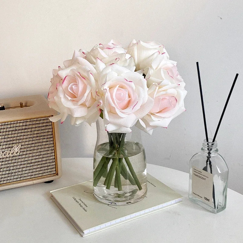 As pétalas possuem um brilho suave e textura realista, imitando rosas frescas recém-colhidas.