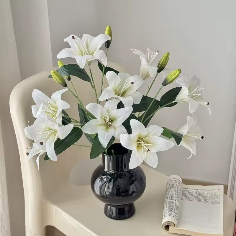 Se você busca deixar sua mesa de jantar ou sala de estar mais bonita, com um toque de elegância imediata, os nossos Lírios Brancos são a escolha perfeita. Flores exuberantes, acabamento refinado e zero manutenção — um visual impecável sem precisar regar, podar ou se preocupar com cuidados diários.